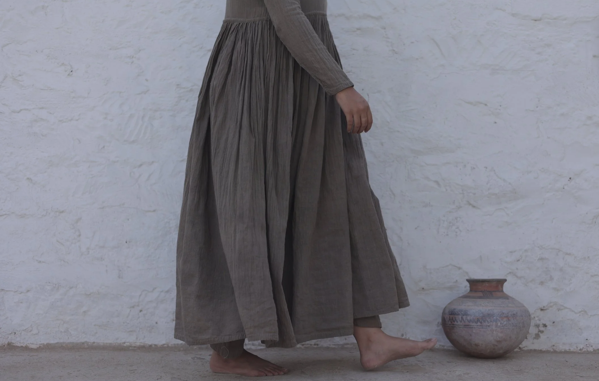 IN THE SOFT FORM OF TRADITIONAL GARMENTS AND TEXTILES, MY COLLECTION REPRESENTS THE SURVIVAL OF ANCIENT SEED AND DESI FIBRES MADE IN WAYS THAT HAVE EXISTED IN THE NOMADIC AND WEAVING COMMUNITIES IN INDIA FOR CENTURIES EVEN MILLENNIA.