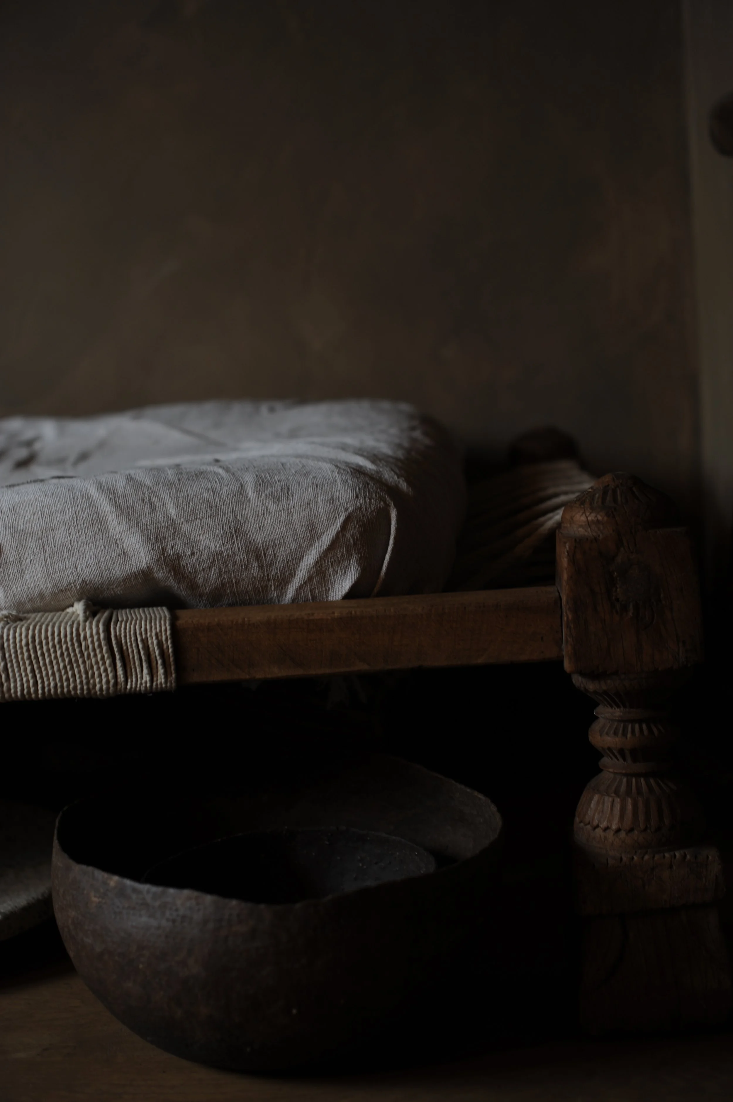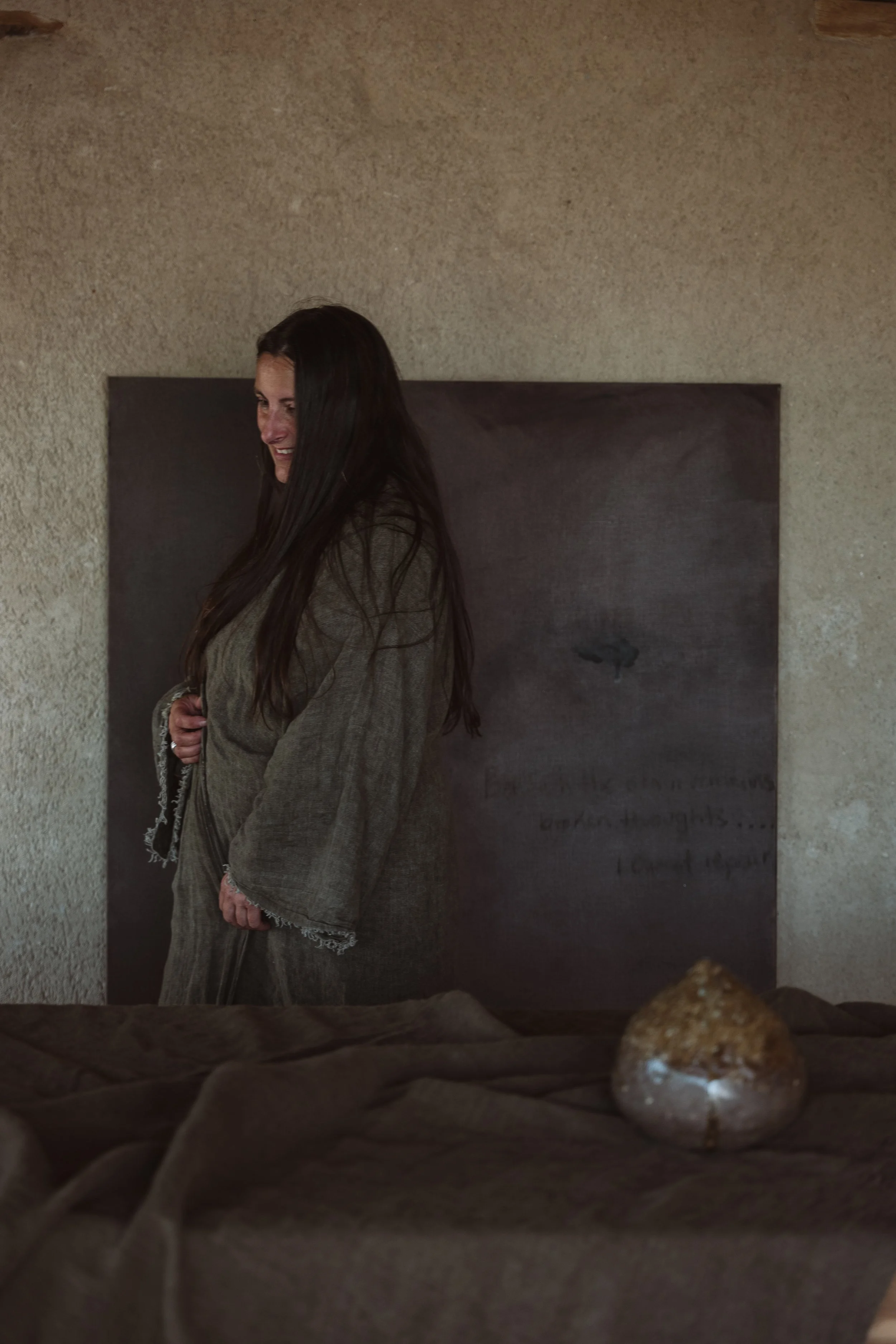 Sarah was invited by the directors of Agua Madera to design the front of house tablewares and consult with her wabi sabi raw design aesthetic - natural simplicity . Part of the consultancy included sourcing textiles, and collaborating with her Indian Khadi handloomed for her visual curation. - Sarah created her own unique tablewares, focusing on the contours and shapes of the natural environment like earth & ocean [agua] rocks , the carob trees hanging over the lunch tables , her collection included ash glazes from trees [ madera ] - she also holds workshops with her earth intuitive clay approach in the Agrotourismo.