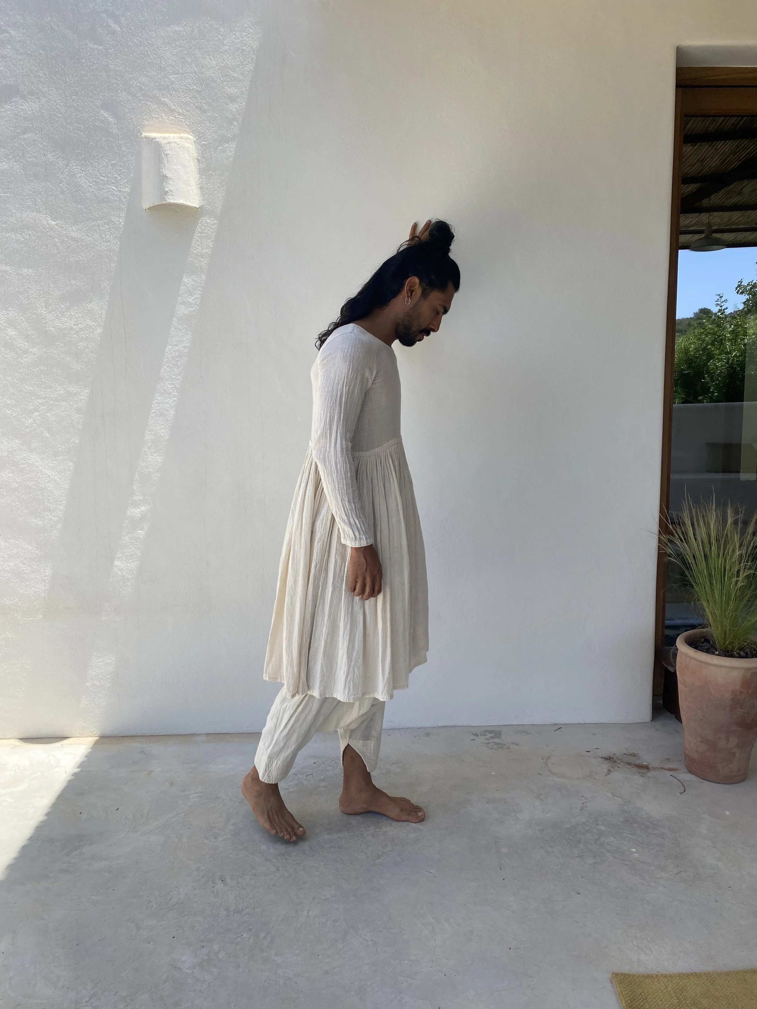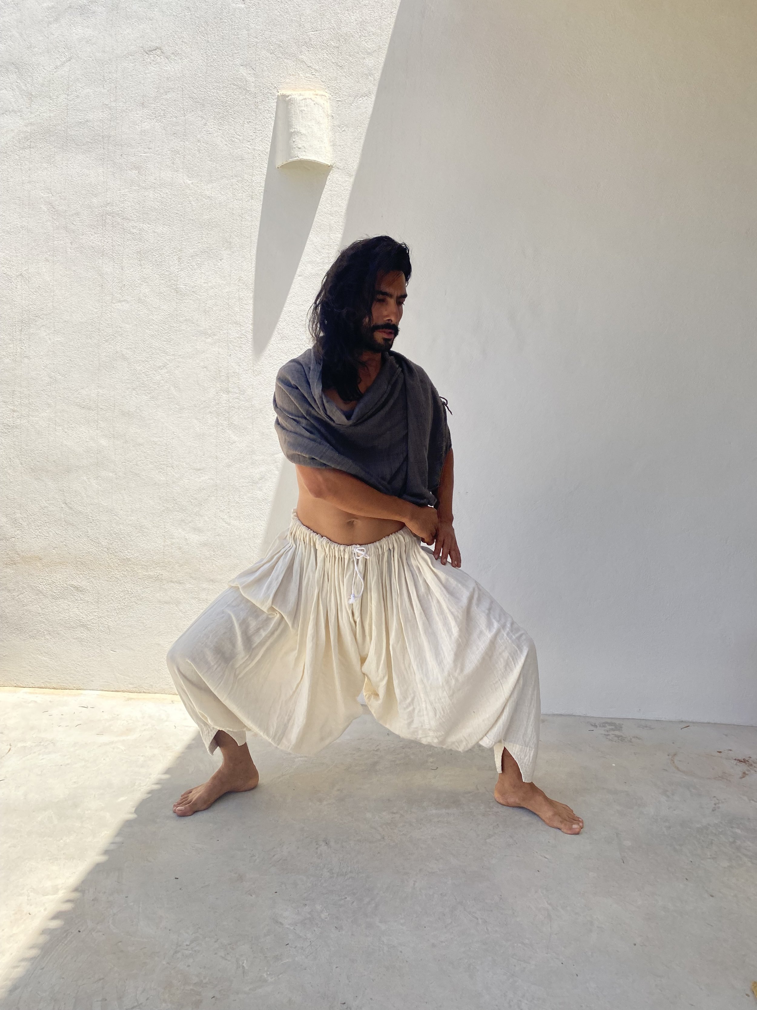 The trousers are the traditional clothing of the Rabari tribe, and were handloomed and hand stitched . They have a drawstring waist so easy to wear and adjustable