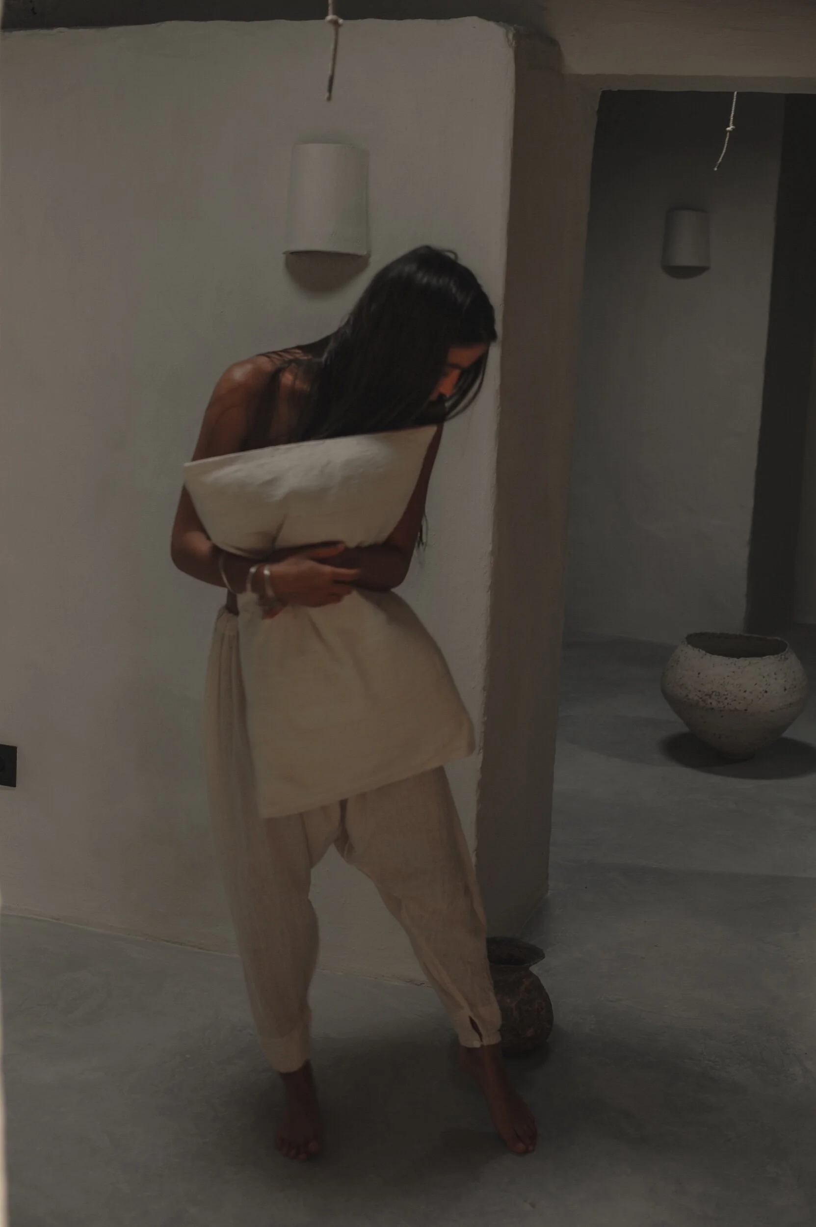 raw effect of the material and its natural woven texture creates unique one off pieces.